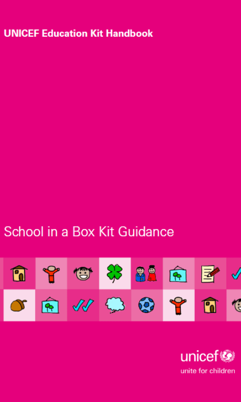 El Manual de Educación en Emergencias (EeE) de UNICEF Guía del kit escuela en una caja, es una herramienta que brinda capacitación y orientación curricular en apoyo de los de kits de educación de UNICEF. El manual está disponible en francés, inglés y español.