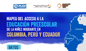 Infografía sobre el mapeo de acceso a la educación de preescolar de la niñez migrante procedente de Venezuela en los países de Colombia, Perú y Ecuador